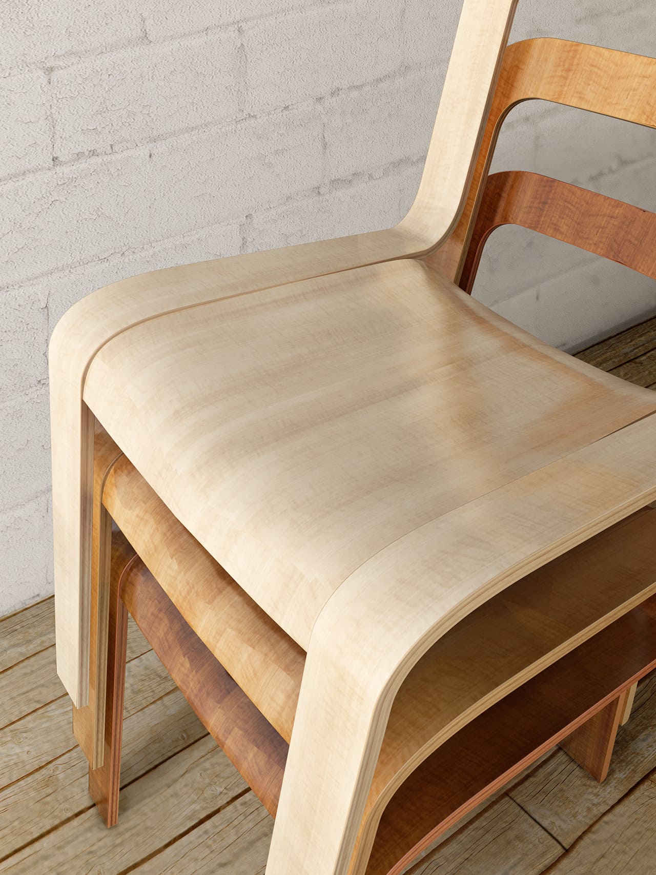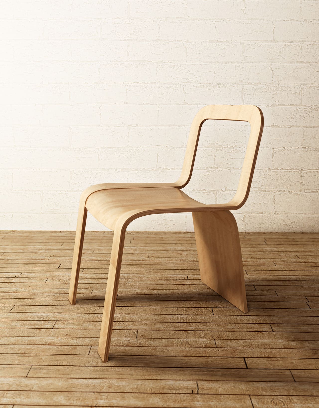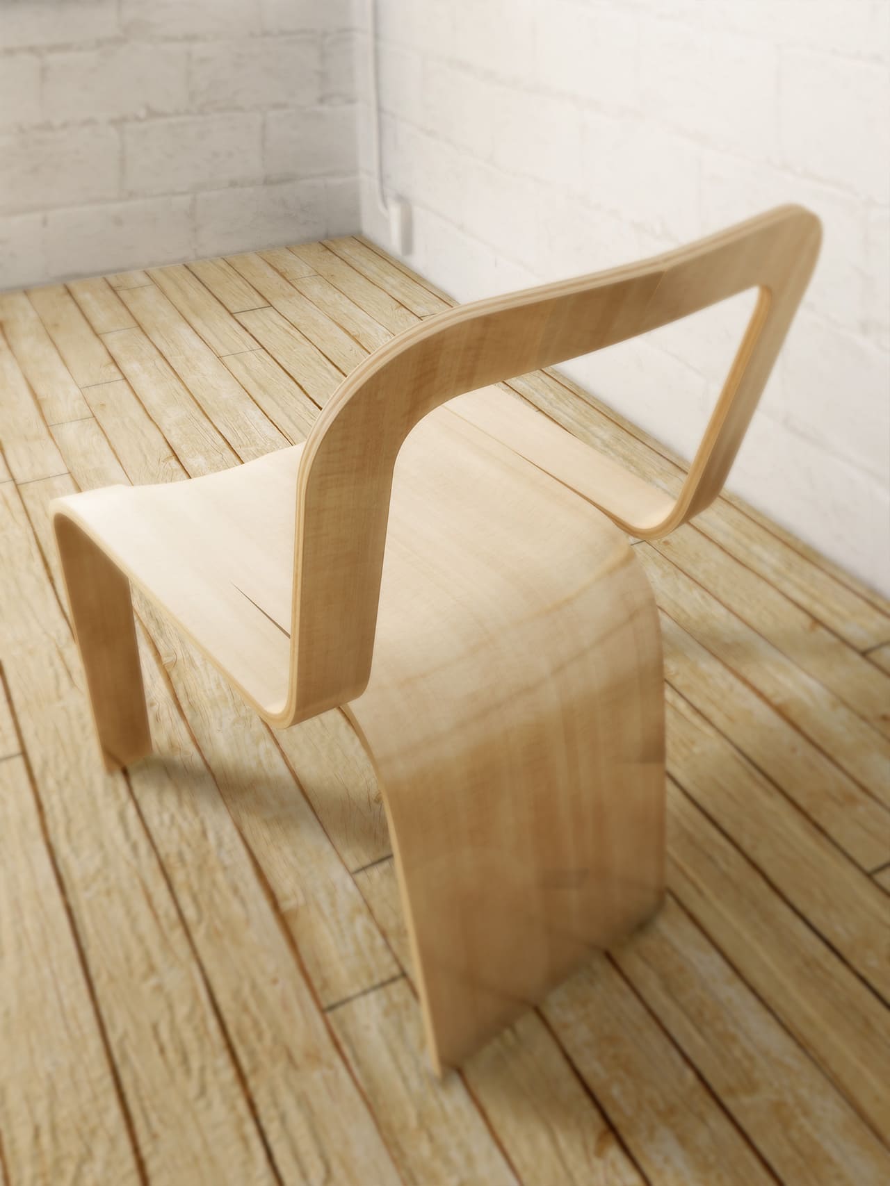 Untitled Chair 2005/xx/xx ヤコブセンのセブンチェアーとかアントチェアーに憧れて、椅子を作ってみた。 成形合板の組み合わせだけで椅子をつくる。 というのがコンセプト。 成形合板の椅子って大抵は背もたれに背骨の出っ張ったとこがゴリゴリして、超痛てーのだけれど、 そのあたりを解決していい感じだった。 残念ながら、当時の5畳の自室には明らかに必要ないものだったし、というかテーブルなかったし、 椅子があること自体がミスジャッジだった。 画像は全部CGやけども、本当に作ったんですからね。 本当ですからね!